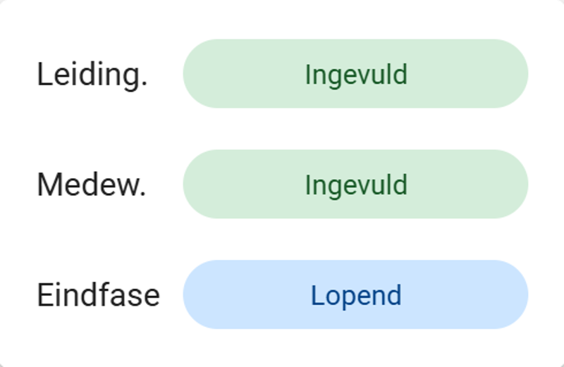Je ziet direct of medewerker en leidinggevende de voorbereiding hebben ingevuld én of het gesprek klaar is voor de laatste fase: het gesprek.