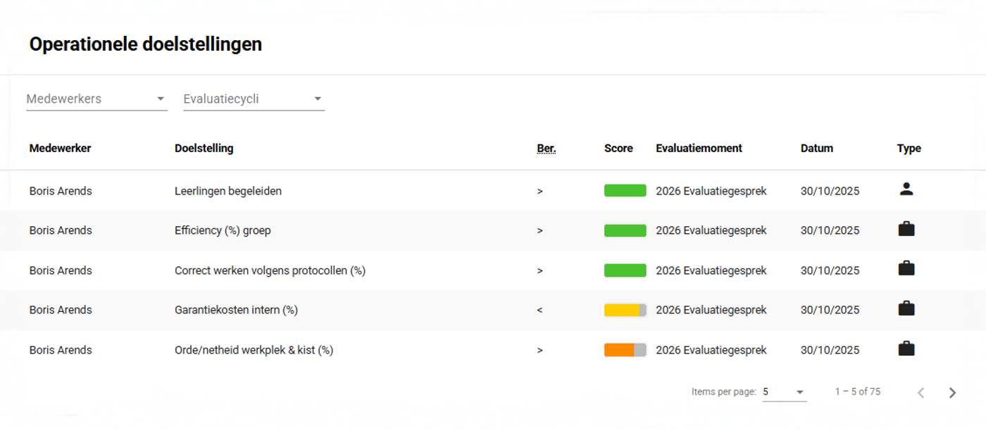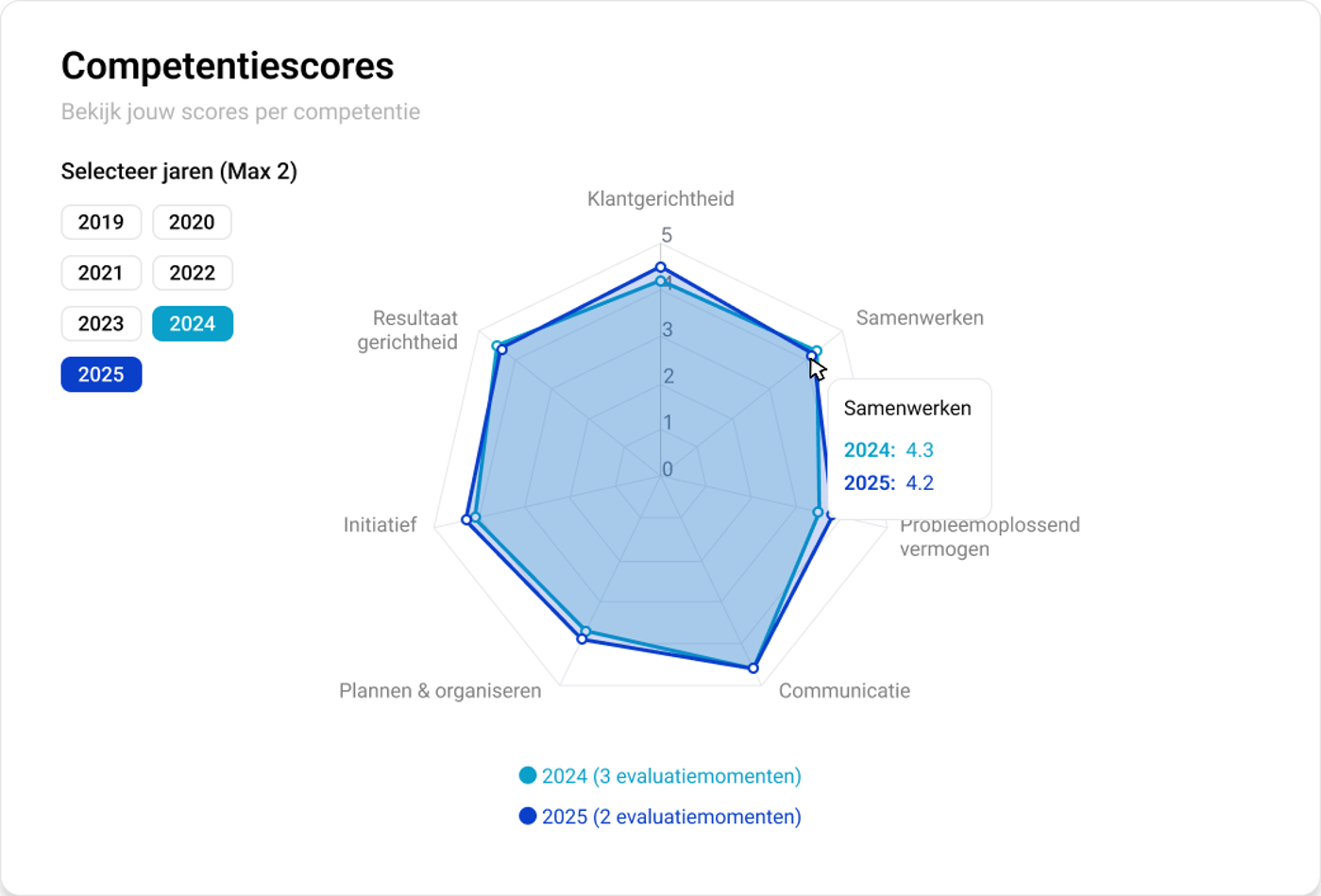 Door scores per gesprek vast te leggen, zie je hoe een medewerker