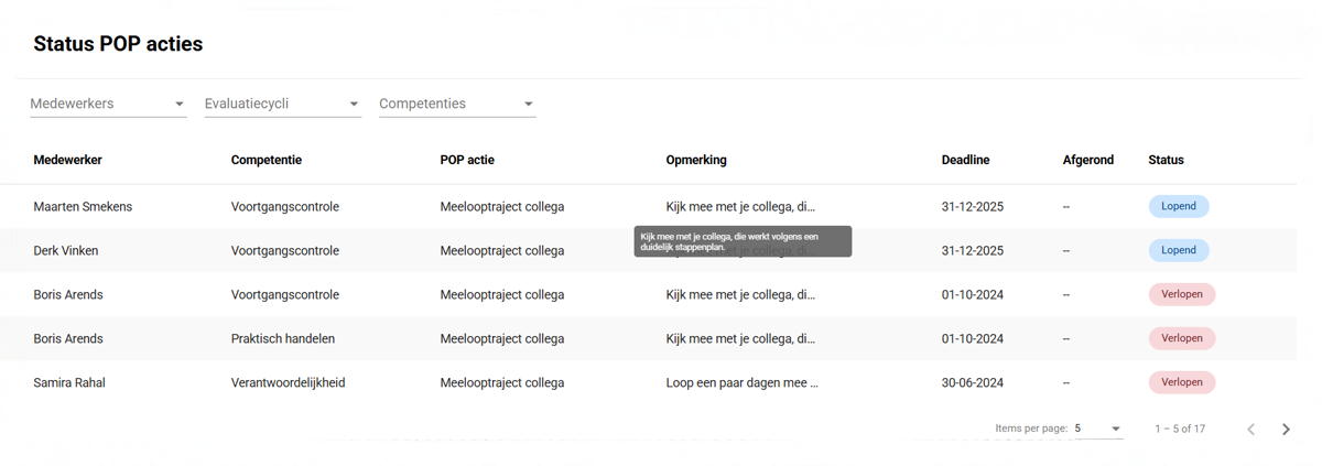 Als leidinggevende zie je in één overzicht welke acties lopen,